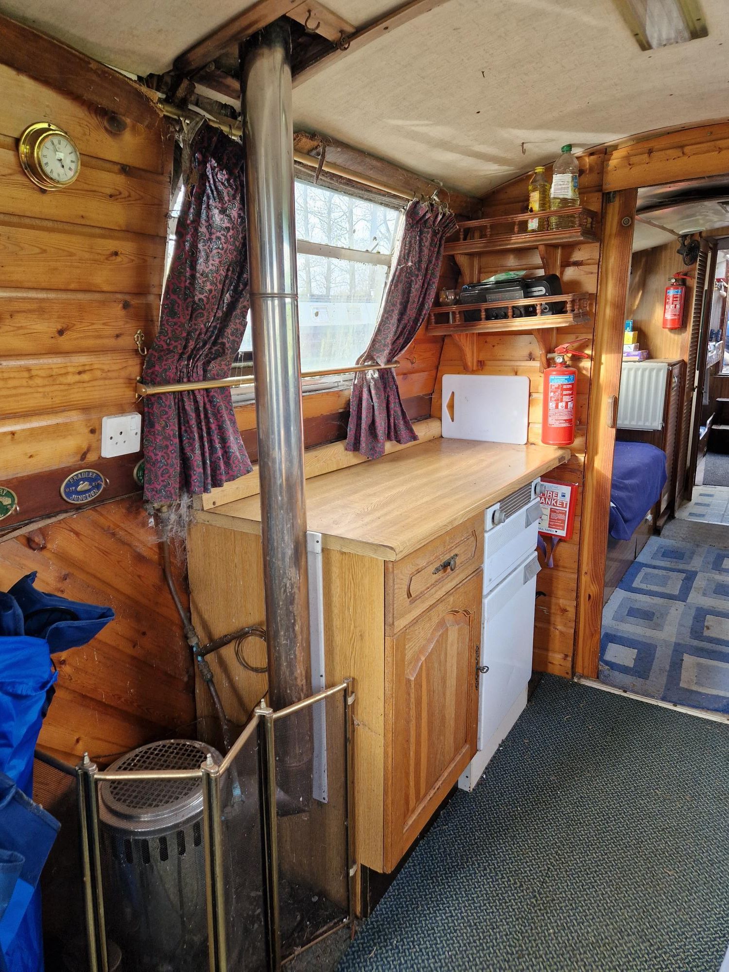 She comes with a range appliances: Gas water heater, Gas hob and oven, fridge, shower, diesel heater and radiators. Her engine is a reliable Lister SR2. A video of the engine running has been provided.