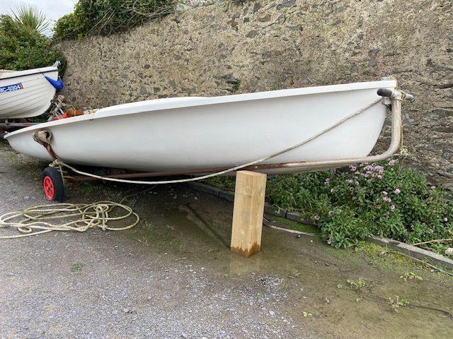 Although not used for a few years she is a fully working 470 sailing dinghy with two masts and probably all the relevant sails. The masts have been outside for a while but all the rigging seems fine, there are two sets of main sails and a gib in the bag.