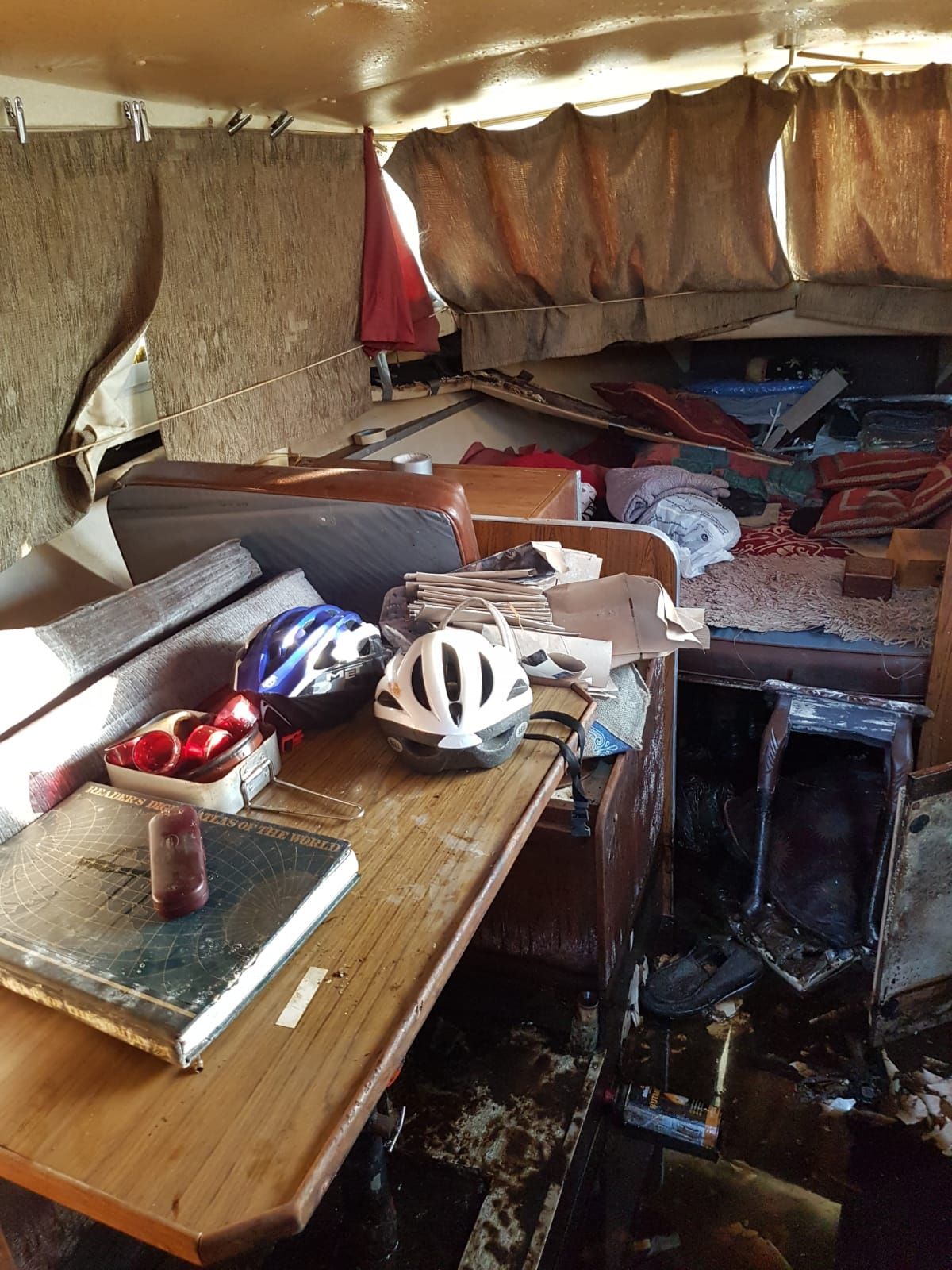 This Birchwood 25 has been locked in a boatyard due to legal proceedings related to an inheritance and has consequently suffered from water ingress and neglect. She was recently pumped out and partially cleaned.
