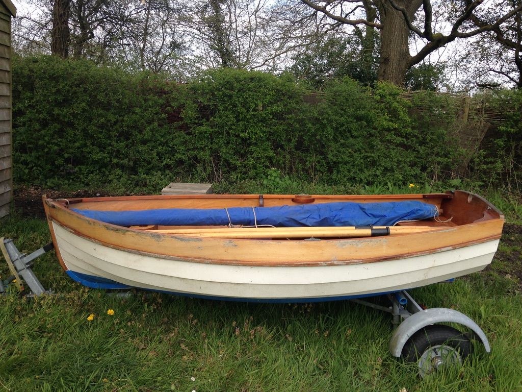 It is complete with spars, centreboard, tiller, a pair of oars, rowlocks, etc. There is also a strong trailer available.