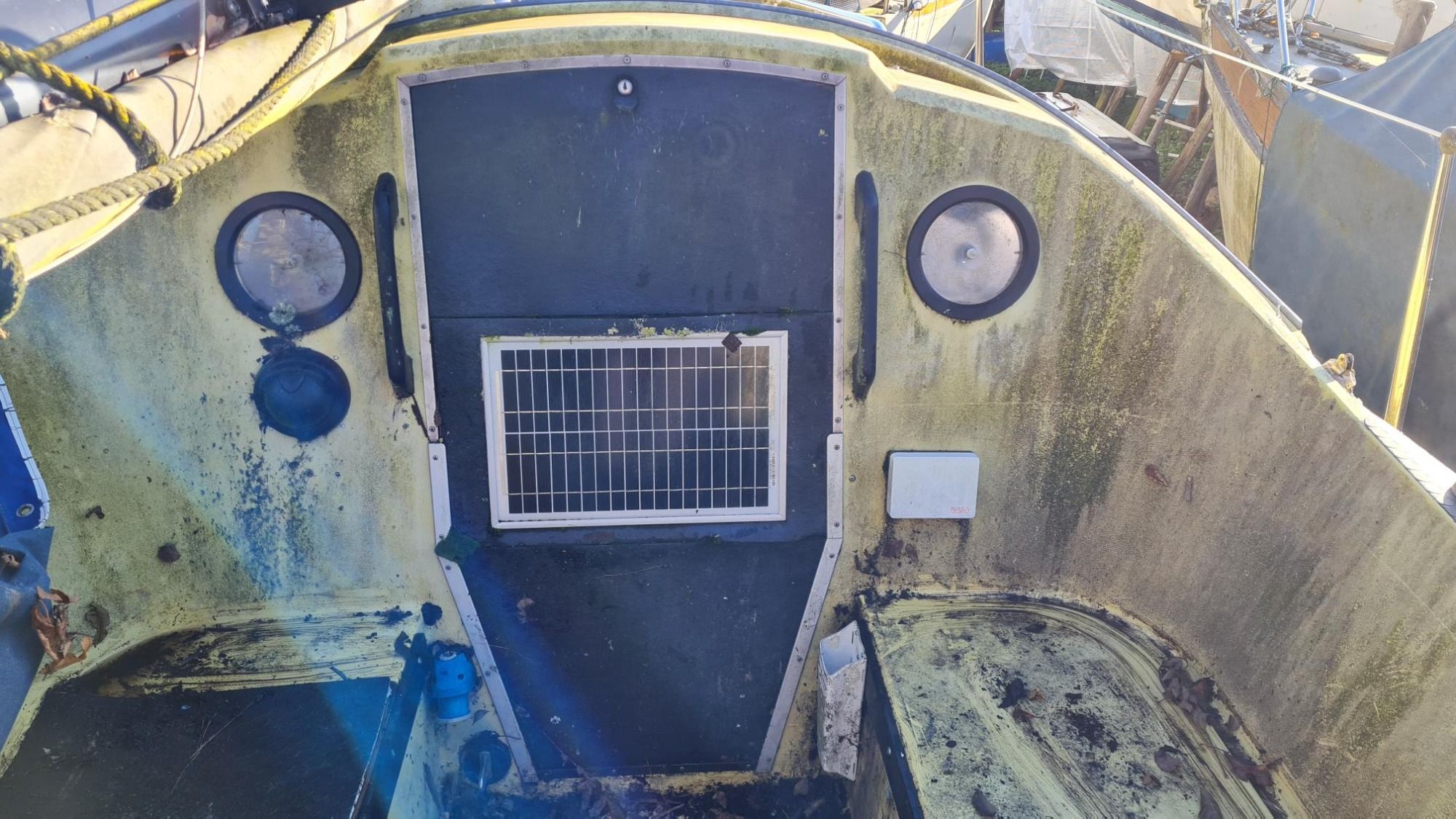 She needs internal deep clean following water ingress. However, the various core components of the 2 x two berth cabins are in place, e.g. two burner, grill, toilet.