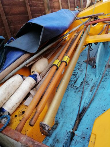 The Gull Dinghy was designed by the infamous Ian Proctor as a boat to teach his children on. The boat now-adays is comonly used by sailing schools as a training boat, or as a cruising boat. This boat in particular comes with a set of wooden oars for cruising and day-sailings. She aslo comes with a few fenders (see photographs').