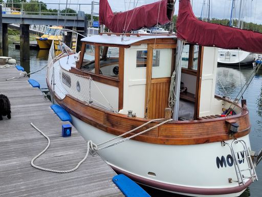 Molly is a 24 ft motor sailer bespoke built on an IP 24 glass fibre Hull. She has 2x aluminium masts (Main and Mizzen) . She is reported to have a Beta 20 diesel engine, new in 2014 with only 500hrs on the clock. Despite her size, she still berths 5.