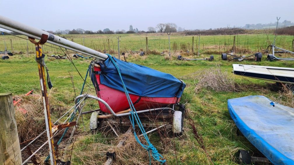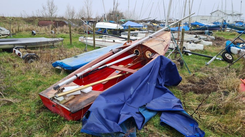 The dinghy comes in full kit, although aged. (mast, main sail, gib, kicking strap, rudder, tiller)