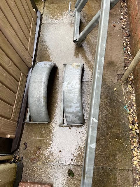 The road trailer is currently dismantled because the owner was servicing the suspension and bearings. It has wheels but no tyres so can't be used until sorted out. The trailer frame looks in good condition however and has only been used twice.