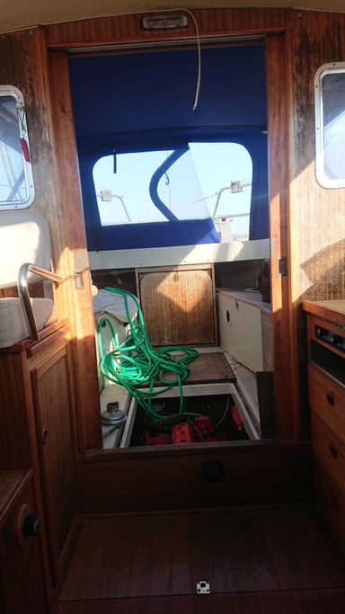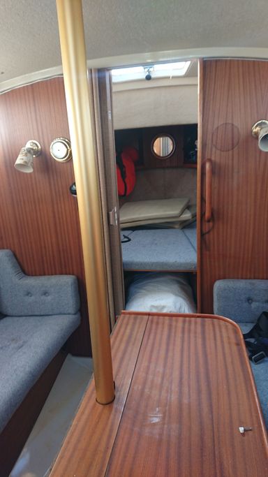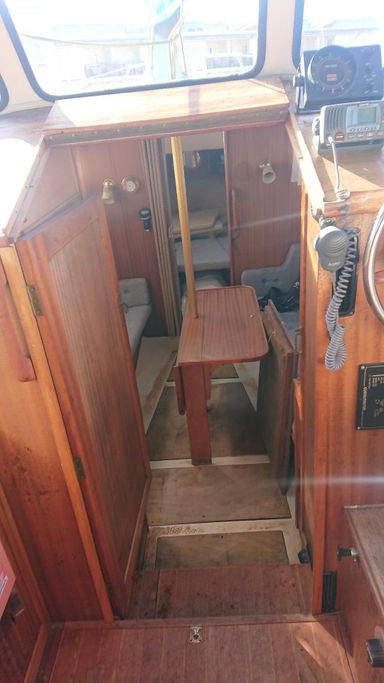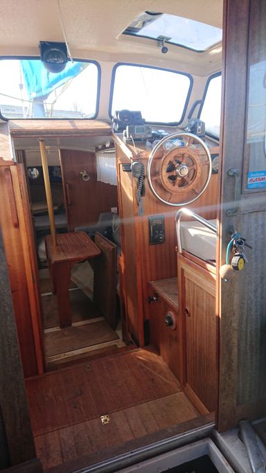 This example of LM27, the renowned Danish Motor sailor, has 36HP engine and a tabernacle arrangement for the mast, as well as an enclosed dog house.