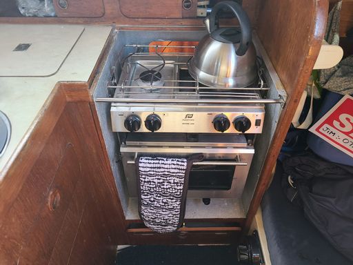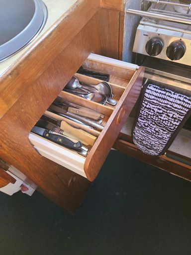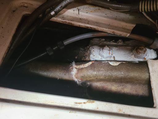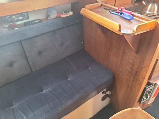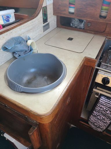 - Gaining access to the starboard side bilge keel, removing the water tank and galley cabinetry