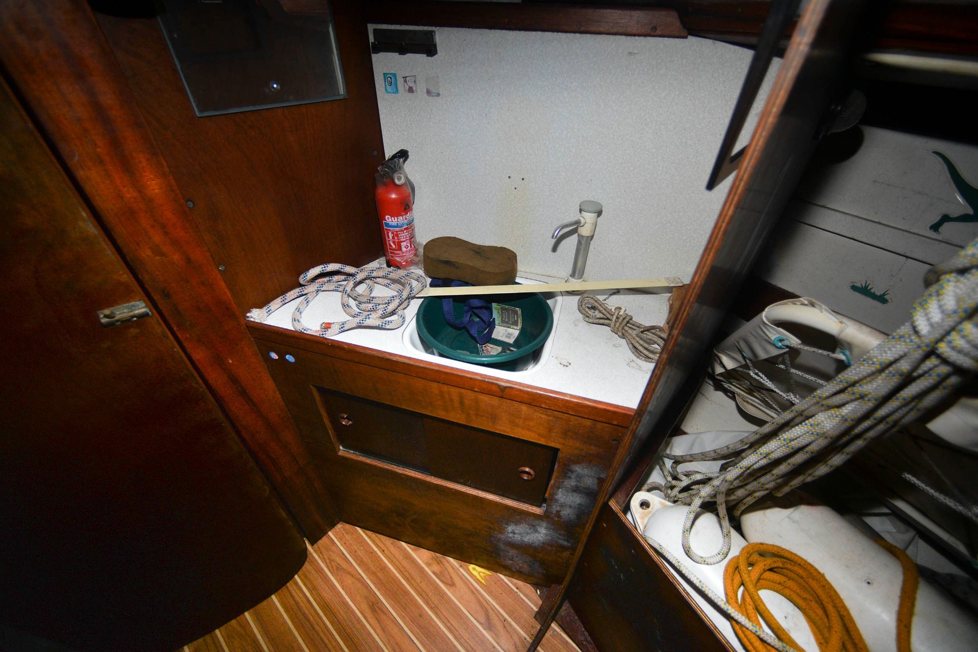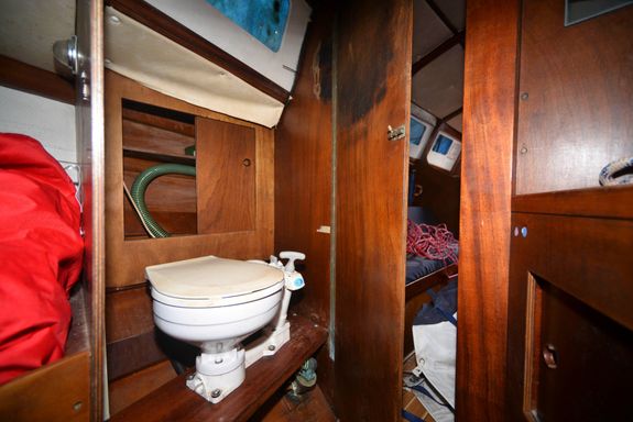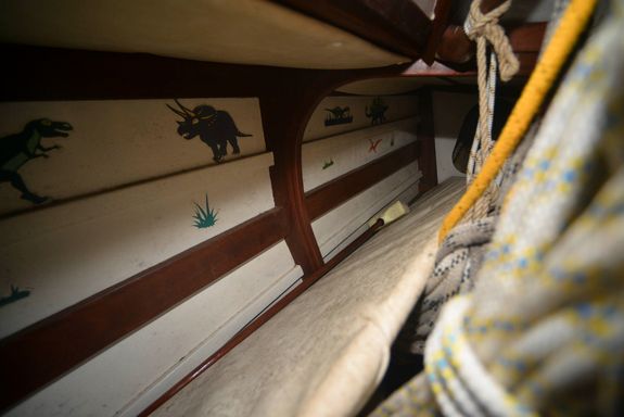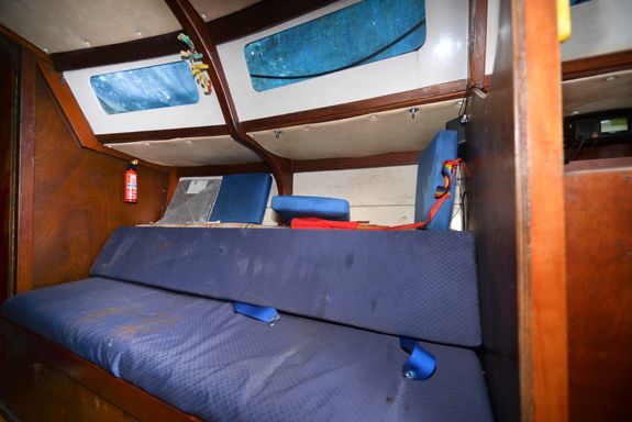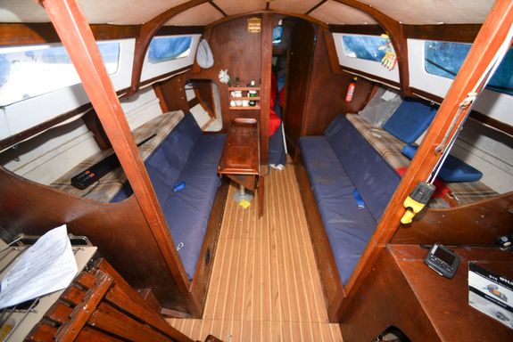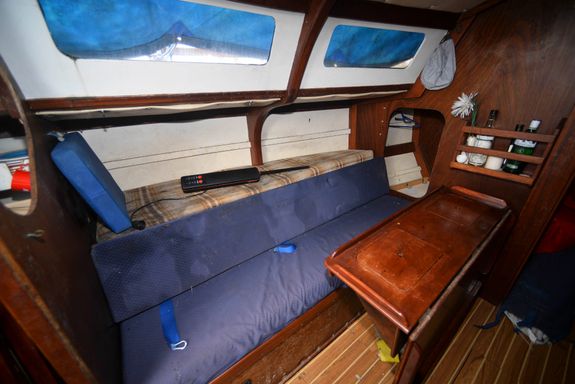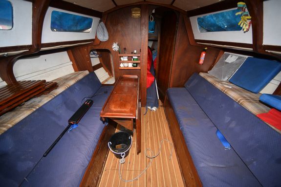 - Interior cushions are on board but do need replacing. Some of the headlining in the fwd cabin affixed to boards has dropped