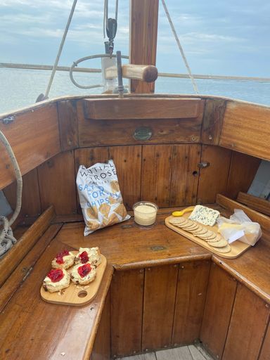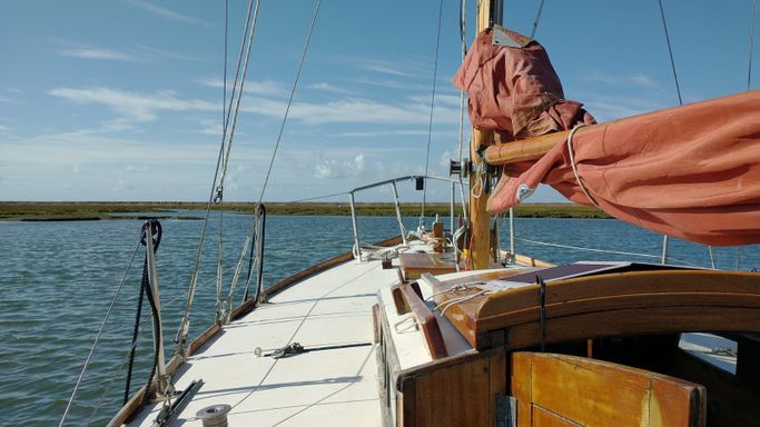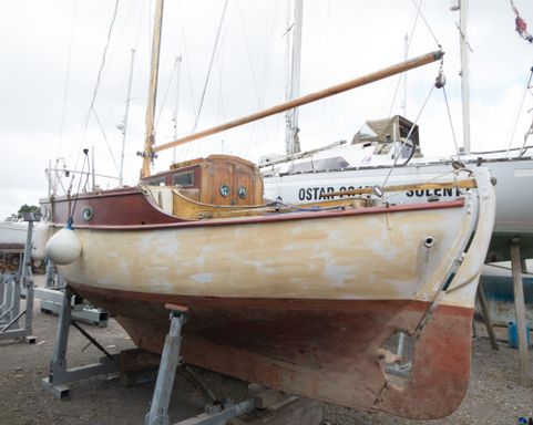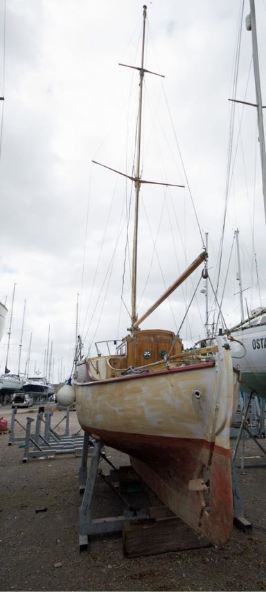 For those who have a bit of a romance with the more classic designs of boat, this name may be of recognition. The Rossiter Heron design was conceived by Hugh Rossiter and Charles Purbrook at their yard in Christchurch. The Rossiter Herons were built over the 50's and part of the 60s, with a weighty full keel and a sloop rig. This one in particular was built in 1956. Her bellowing, almost barge-like shape means that despite being only 22ft, she has levels of space not often associated with a sailboat of her size.