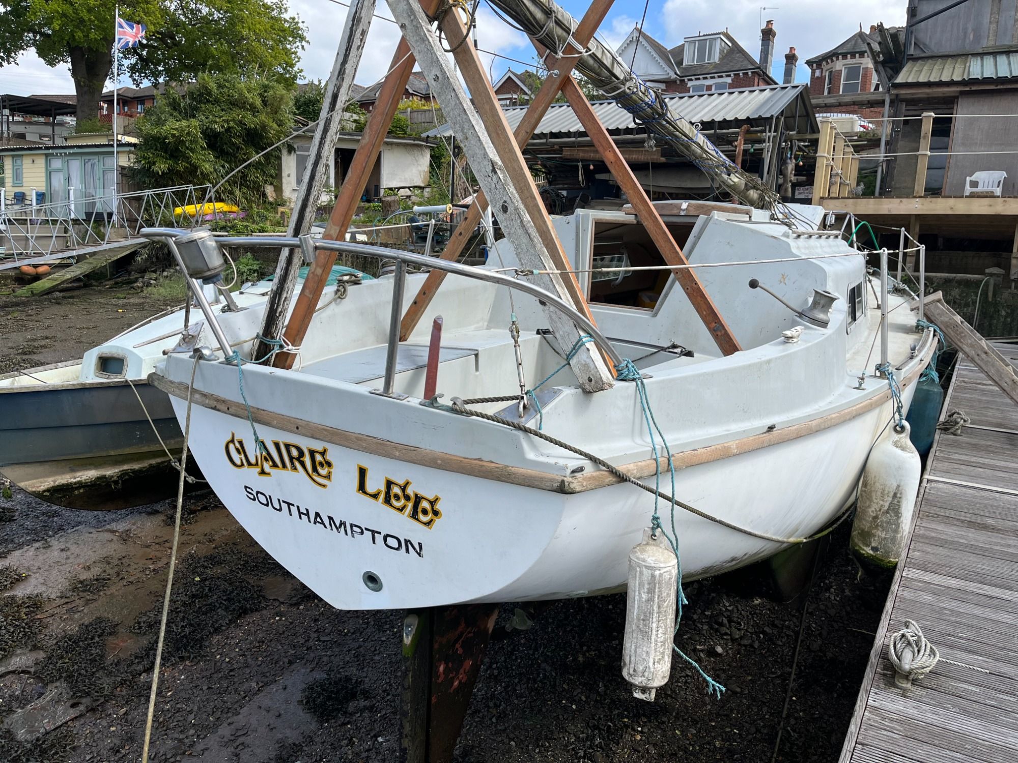 The Claire Lee is a 1972 Twin Keel Sabre 27, she is now in need of love, attention and complete renovation. She is currently located in Southampton on a tidal berth on the river Itchen.