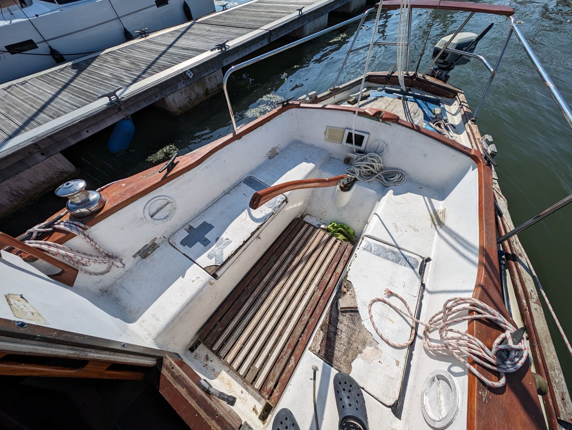 The boat has been bought as a project boat last year, but happened to be a bigger one than expected. She comes with furling main and headsails but needs a lot of love on various parts. Yanmar 2gm20 works and runs (at least that was the case in spring).