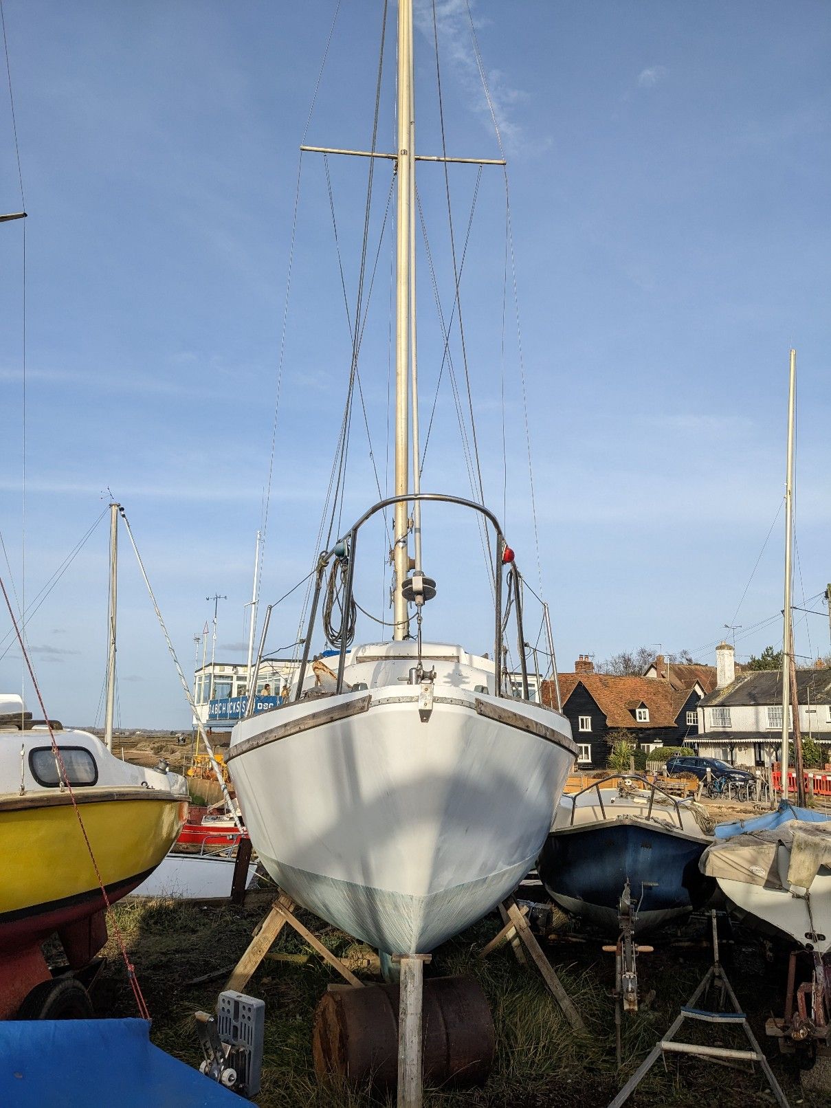 Currently stored ashore in West Mersea, Essex with fees paid until mid April possibly end of April.