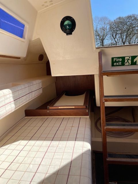 Detailed description: 25’ fixed keel sailing boat, very clean, freshly antifouled, not in water yet. Modern fractional rig,mast,boom,kicker,spinnaker pole, furling, Barton Traveller with central cleating Mainsail, Genoa and a spinnaker. Garmin GPSMAP 130, NASA Clipper Log Depth Wind Speed GPS Repeater. Autohelm ST1000, Plastimo Compass, Mast and deck level lights, battery, solar panel to support battery, bilge pump, overboard step ladder, 7.5kg Bruce anchor with 5mtrs chain and 25mtrs Octoplait. New Blakes seacocks fitted, Jabasco toilet, new hatch fitted,