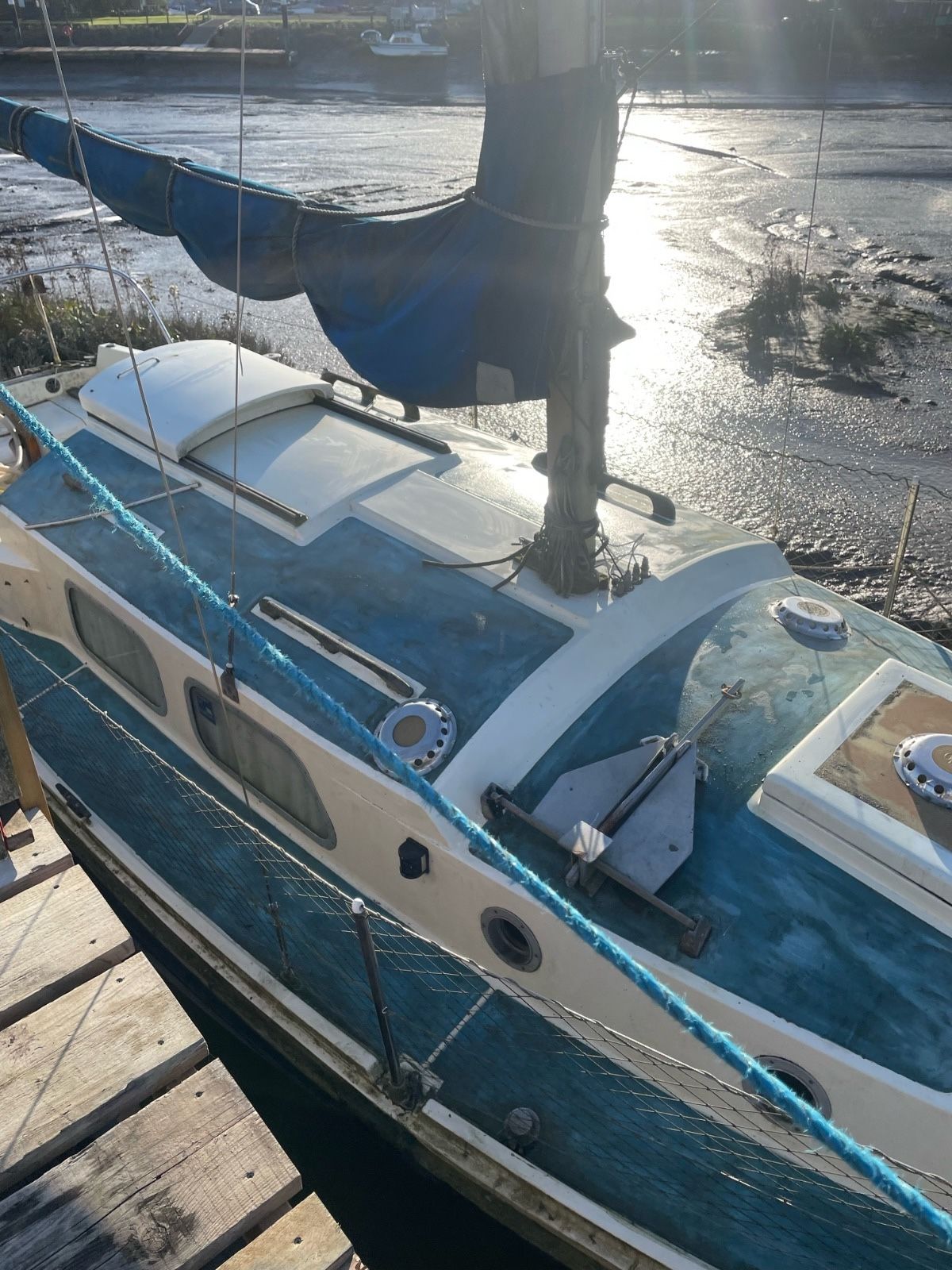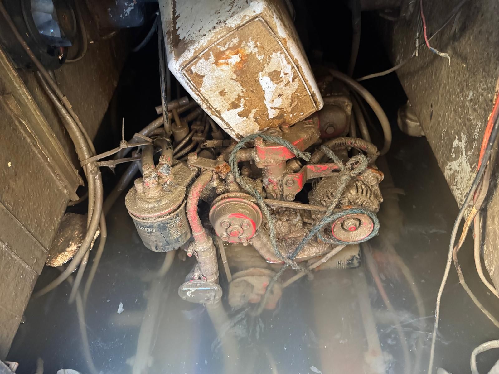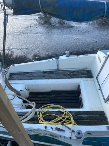 The boat needs an enthusiastic new owner. Unfortunately, the boat has been flooded, the cause of which is not directly known. It was in bad condition during heavy rain, additionally there is a suspicion that the seacocks are jammed open or partially open.